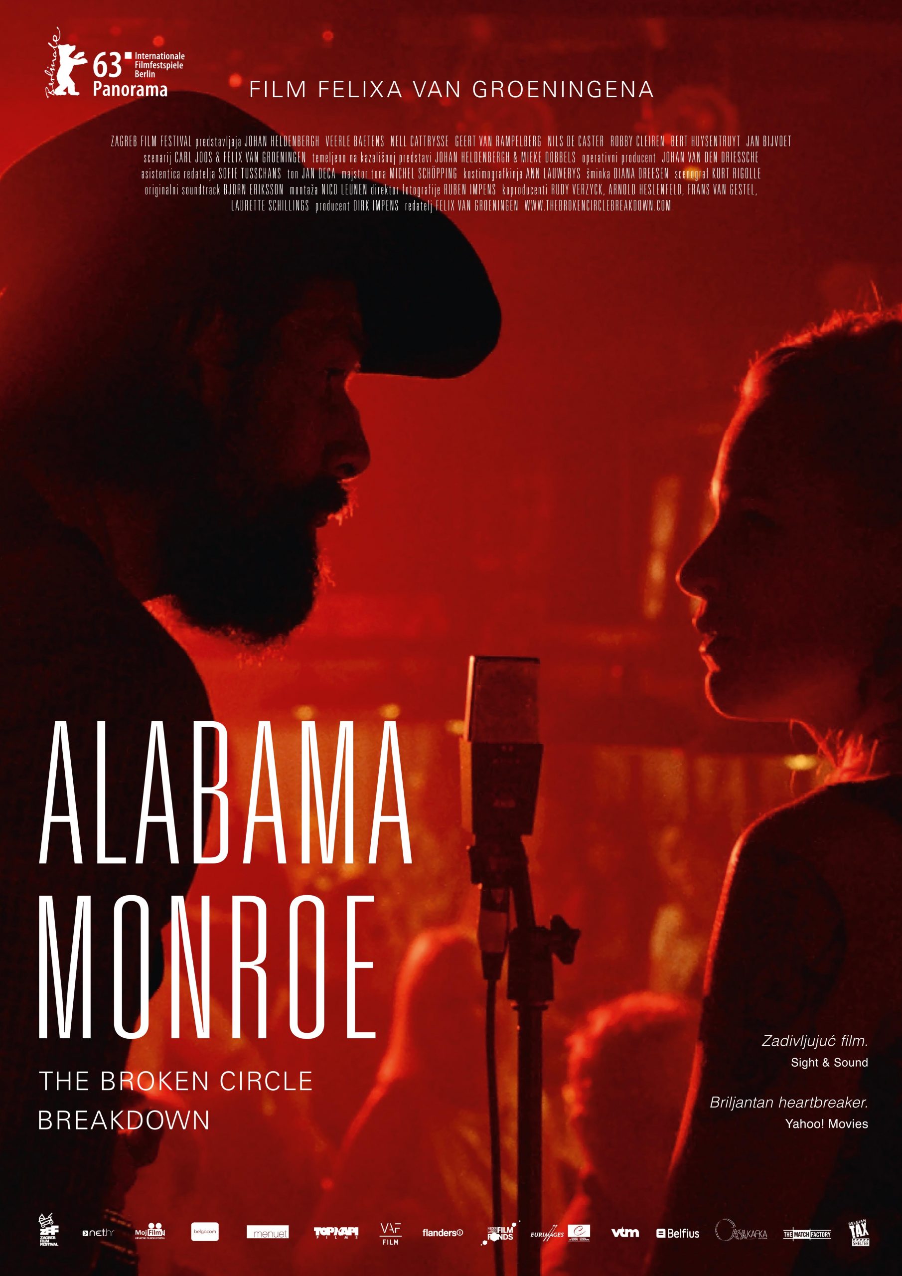 U fokusu belgijskog filma “Alabama Monroe” ljubavni je odnos vlasnice salona za tetovaže Elise i svirača u bluegrass bendu Didiera. Elise se pridruži bendu, a uskoro dobiju i kćer Maybelle. Njihovu vrtoglavu vožnju kroz život u filmu prati izvrstan i emotivan soundtrack u izvedbi glavnih glumaca, a koji uključuje i obradu pjesme “If I Needed You” Townesa Van Zandta. Film je bio nominiran za Oscara za najbolji strani film 2014. godine, dobitnik je nagrade publike na Berlinaleu 2013, a glumica Veerle Baetens za ovu je ulogu osvojila nagradu za najbolju glumicu Europske filmske akademije.